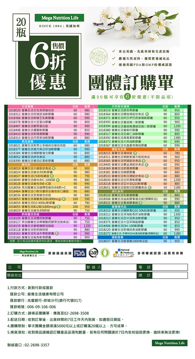 營養生活健康有限公司 TEL:02-2698-3357 FAX:02-2698-3508