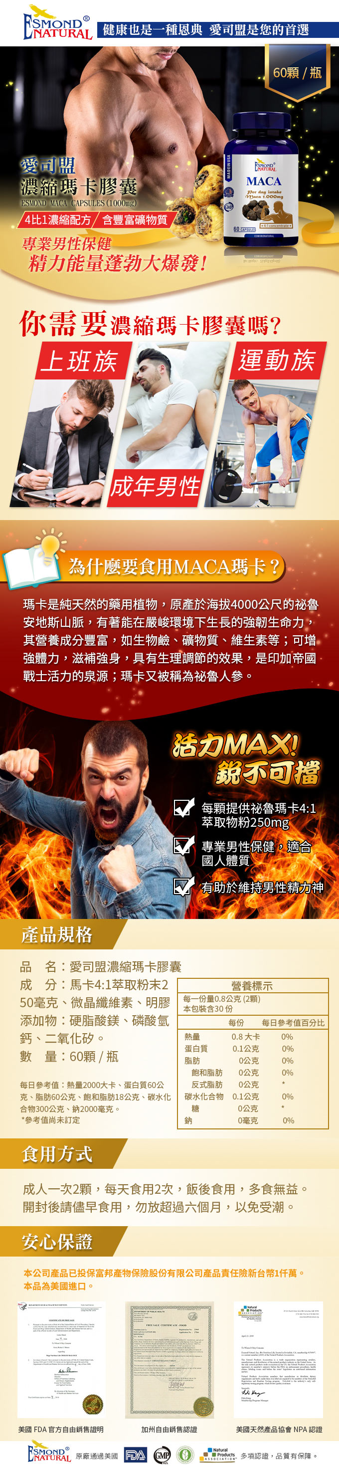 成份:馬卡4:1萃取粉末、微晶纖維素、明膠、硬脂酸鎂、磷酸氫鈣、二氧化矽