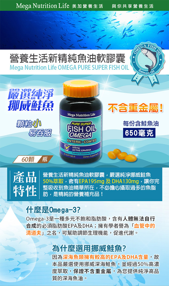 深海鮭魚魚油,讓你完整吸收到魚油精華所在,不必擔心攝取過多的魚脂肪,是精純的營養補充品。